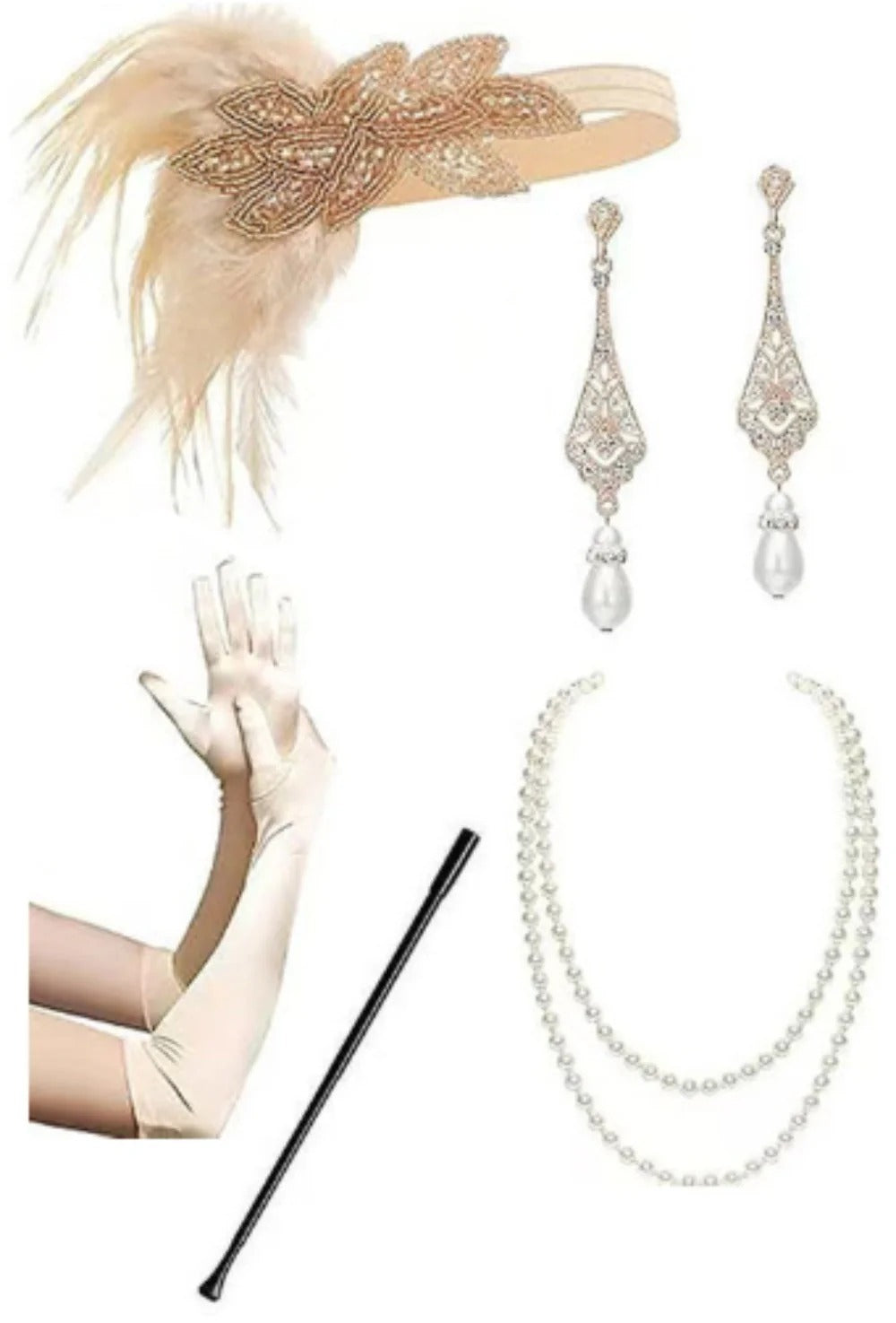 - Optional: Headband, Earrings, Necklace, Gloves, Cigarette holder