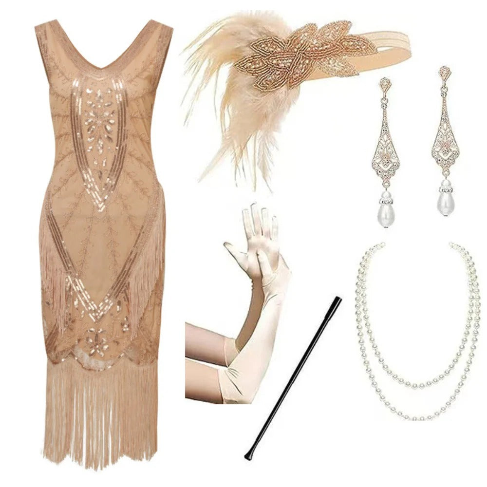 Champagne Gold 1920s Flapper Dress – Women's Gatsby Costume