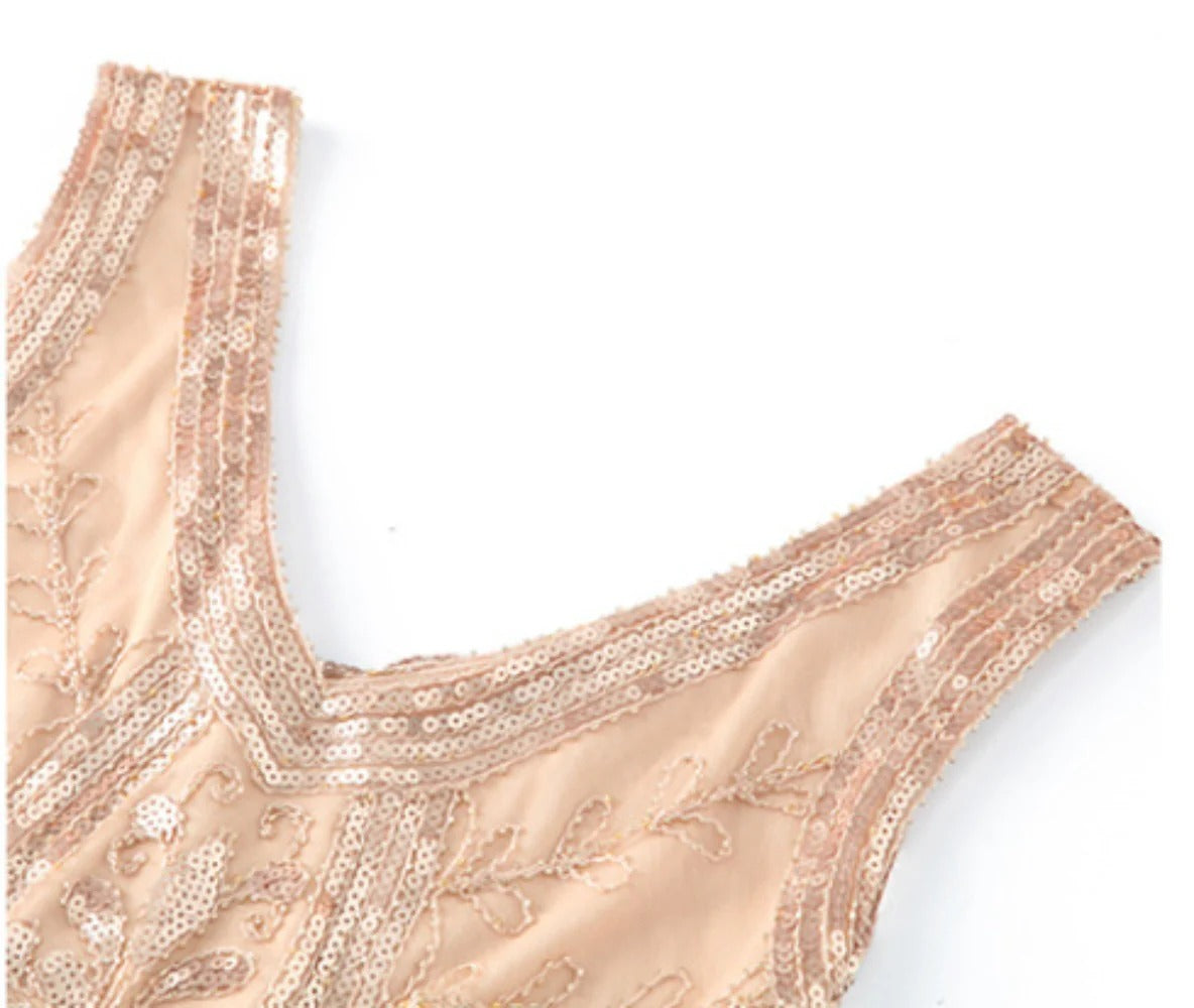 Step into the Jazz Age with this dazzling 1920s flapper dress in champagne gold. Designed for vintage lovers and modern glam queens alike, this showstopping piece pairs beautifully with feathered headbands, faux fur shawls, and Art Deco jewelry.