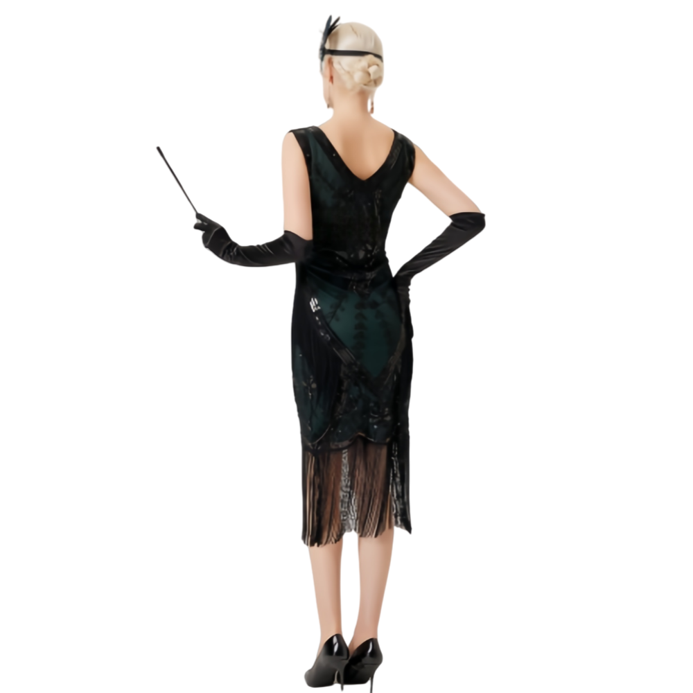 - 1 x Deluxe Black & Green Sequin Flapper Dress