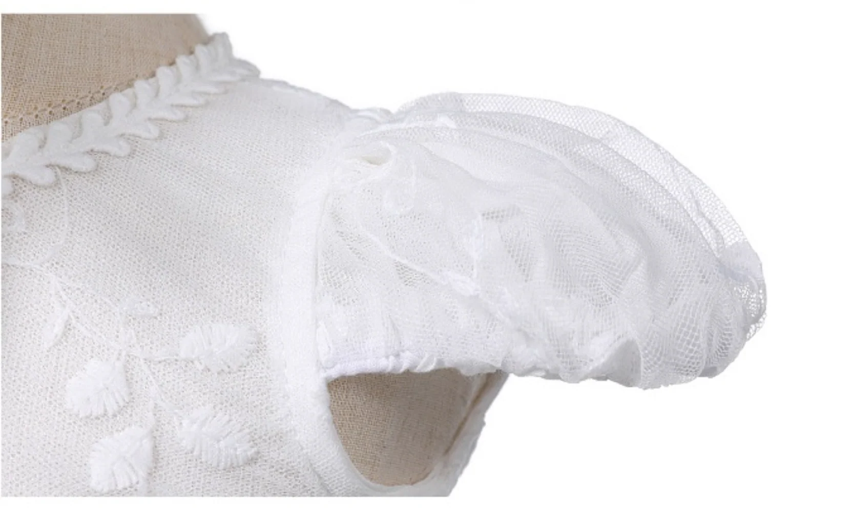 - Delicate Flutter Sleeves – Sweet and elegant short lace sleeves for a soft princess touch.