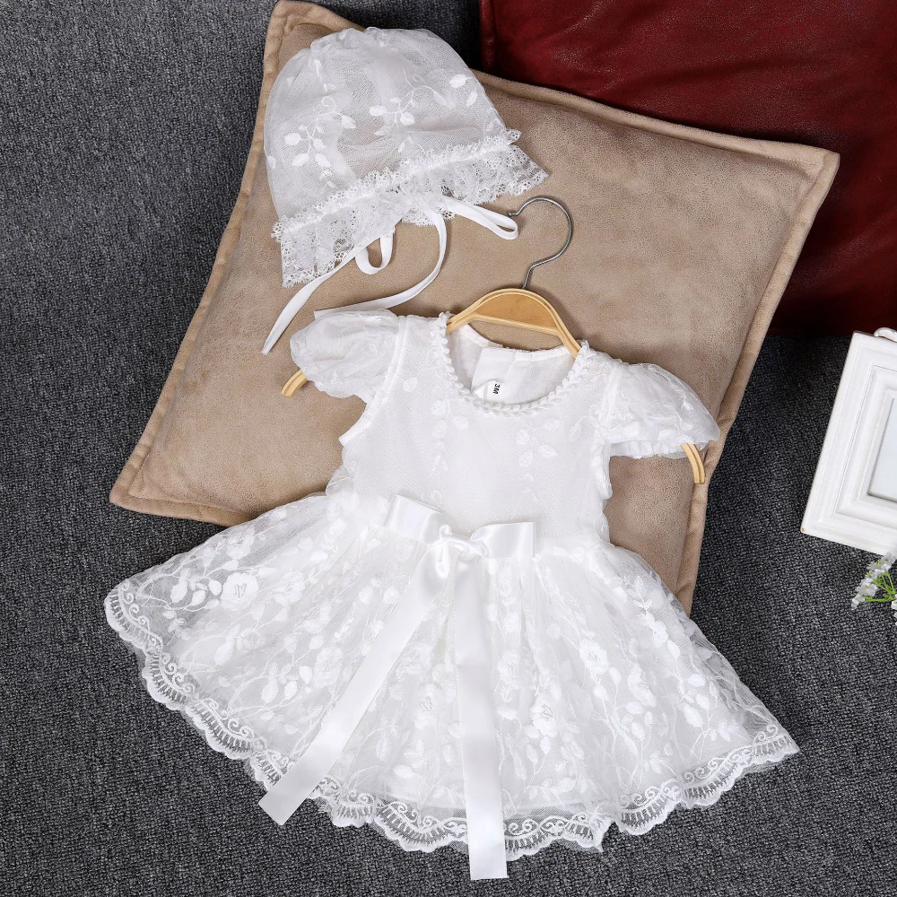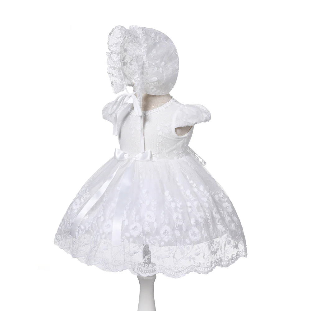Baby Girl Lace Princess Dress with Hat – Puffy Tulle Gown Christenings