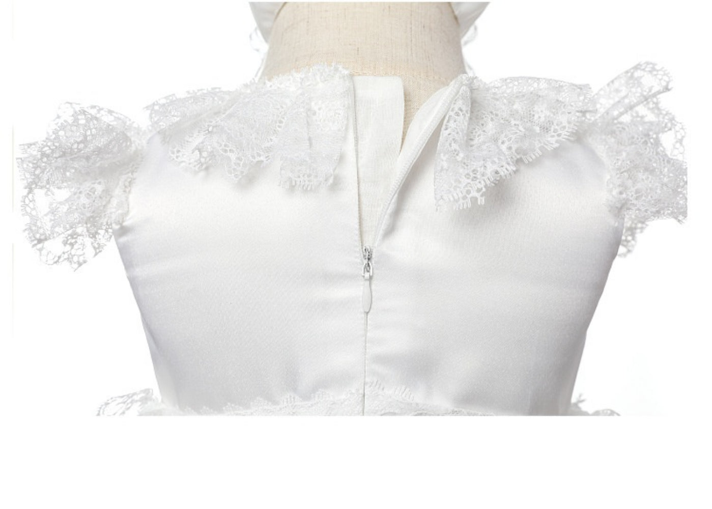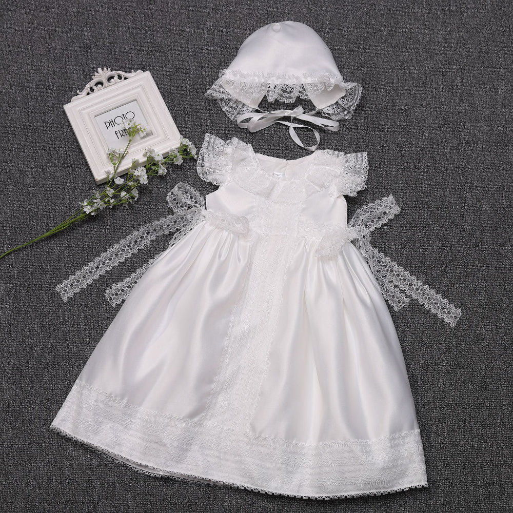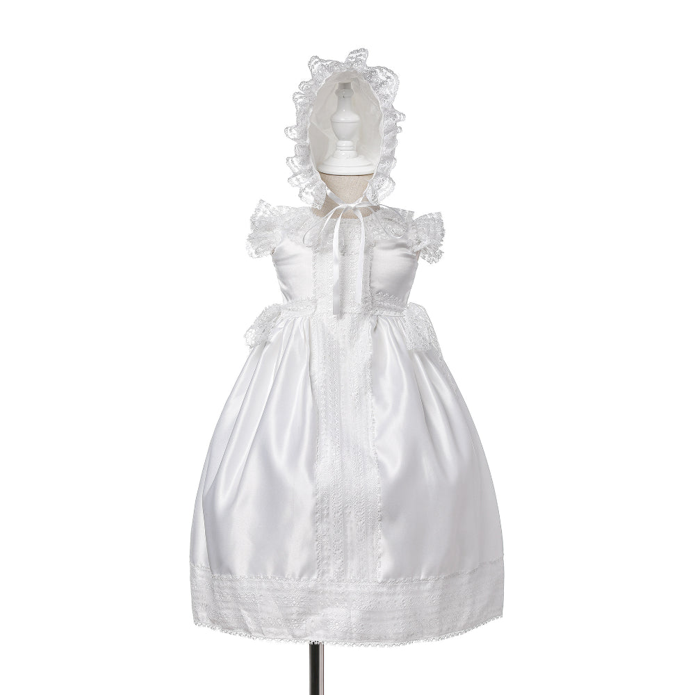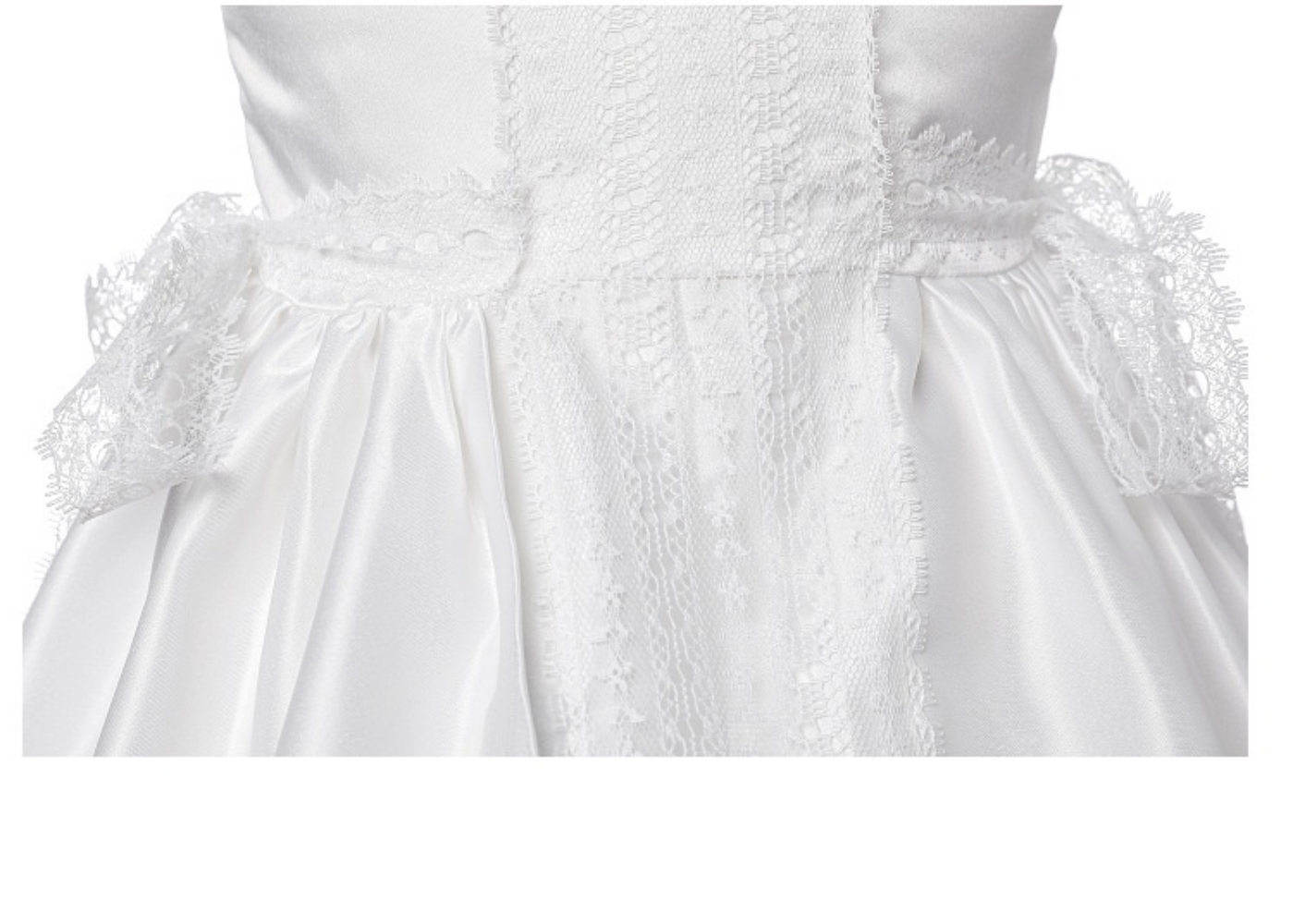 Baby Girl Long Satin Christening Gown – Lace Trim Princess Dress