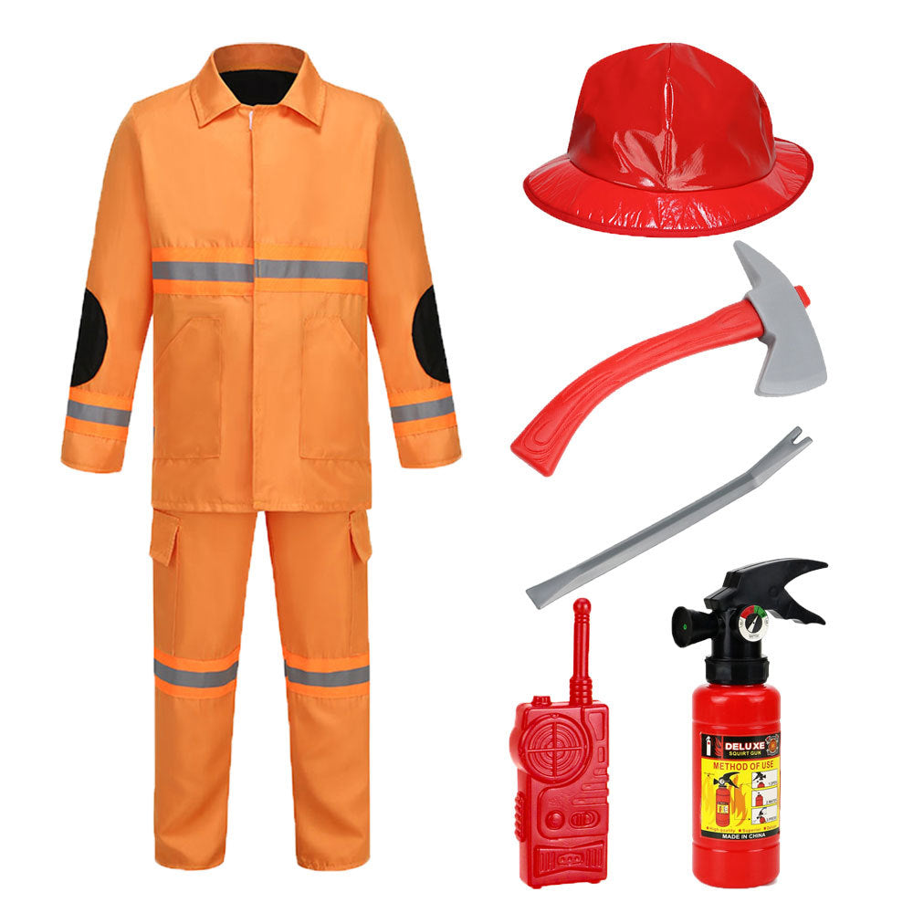 Boys Fireman Uniform Suit Children's Firefighter Performance Costume with Toy