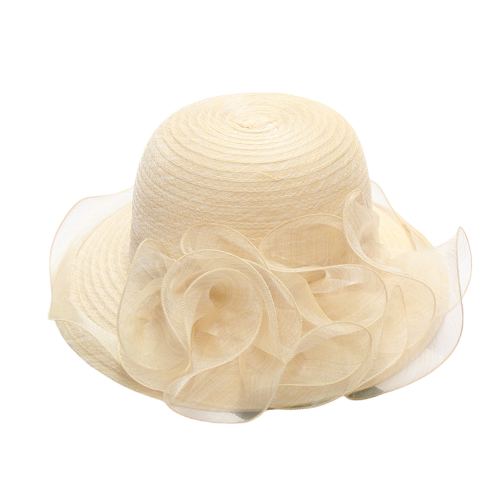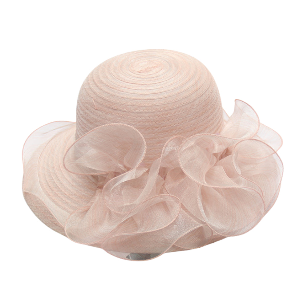 Elegant Women’s Organza Wide Brim Sun Hat – Foldable Floral Summer Beach Hat for Melbourne Cup, Garden Party, Outdoor Events