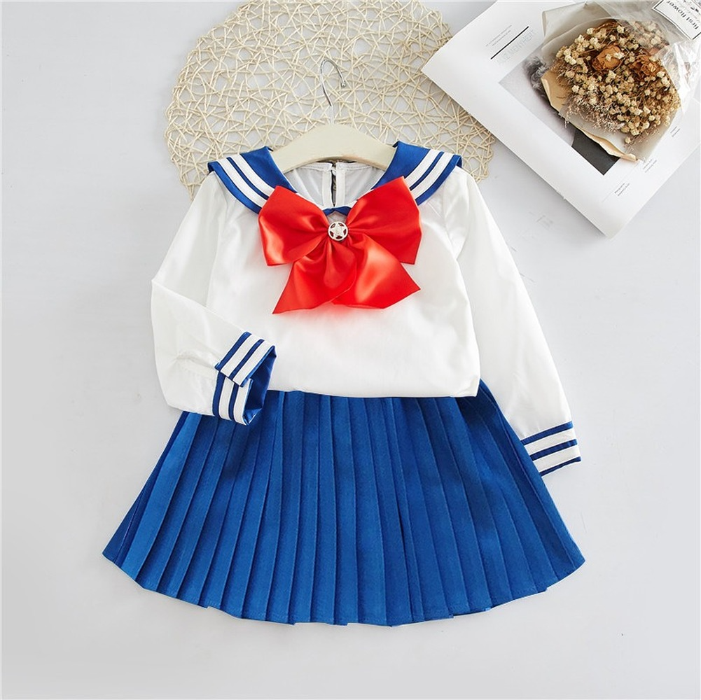 Girls Navy Sailor Costume Child Halloween Long Sleeve School Uniform Fancy Dress