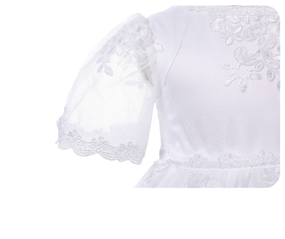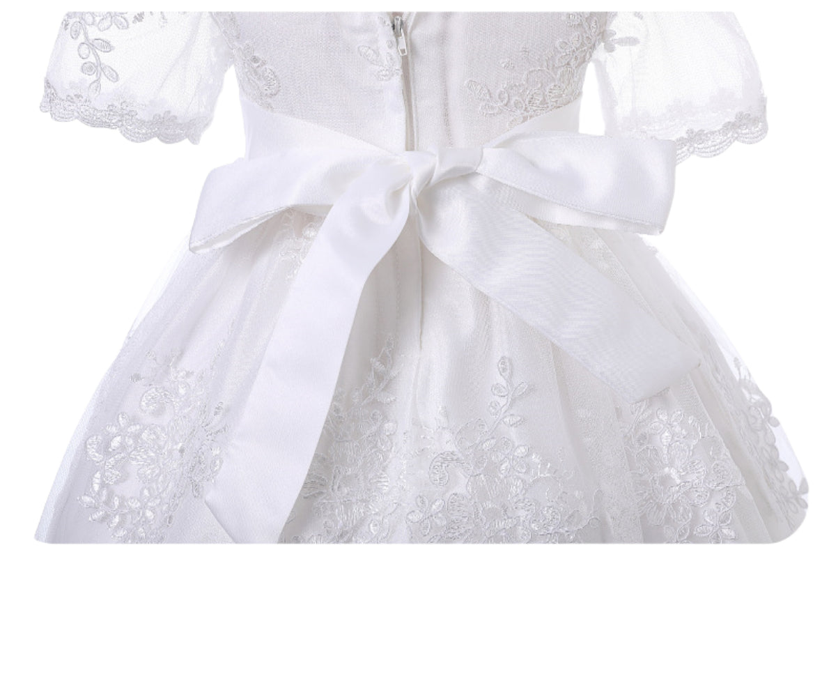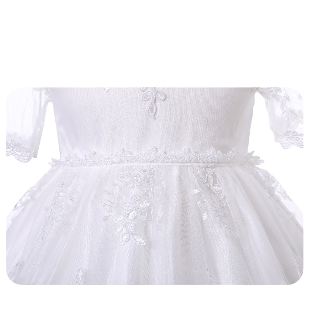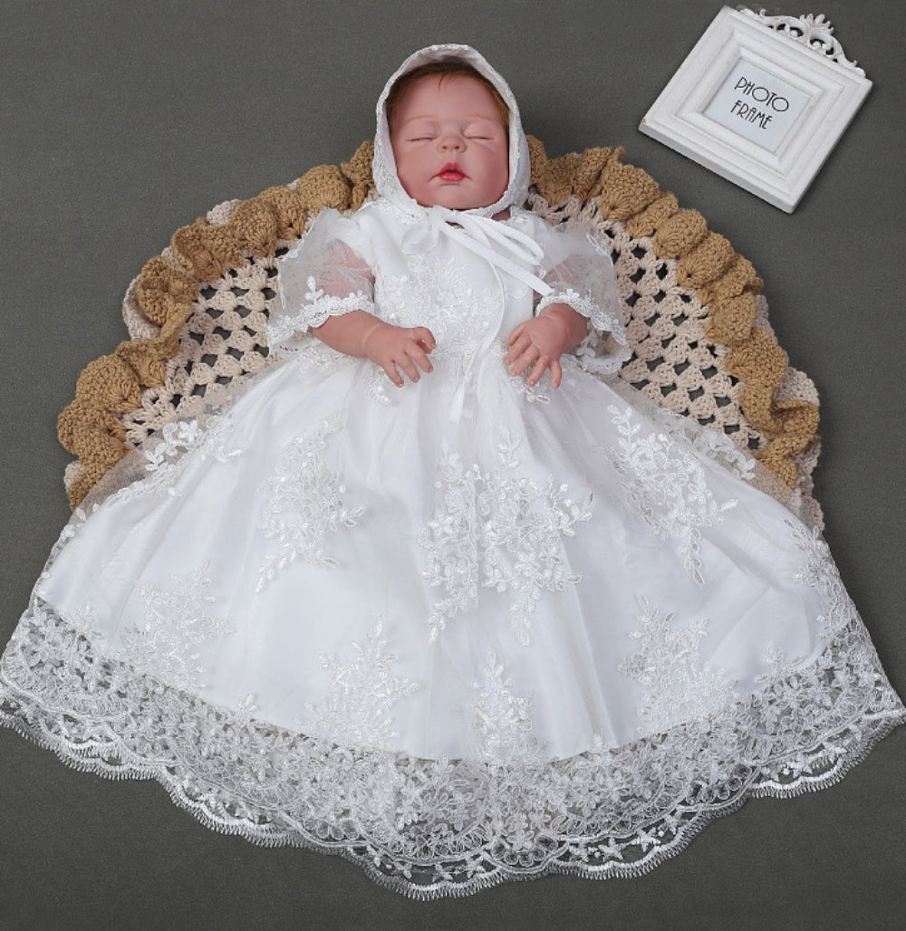 Baby Girl Lace Christening Gown Ivory Long Dress – Infant Baptism Outfit