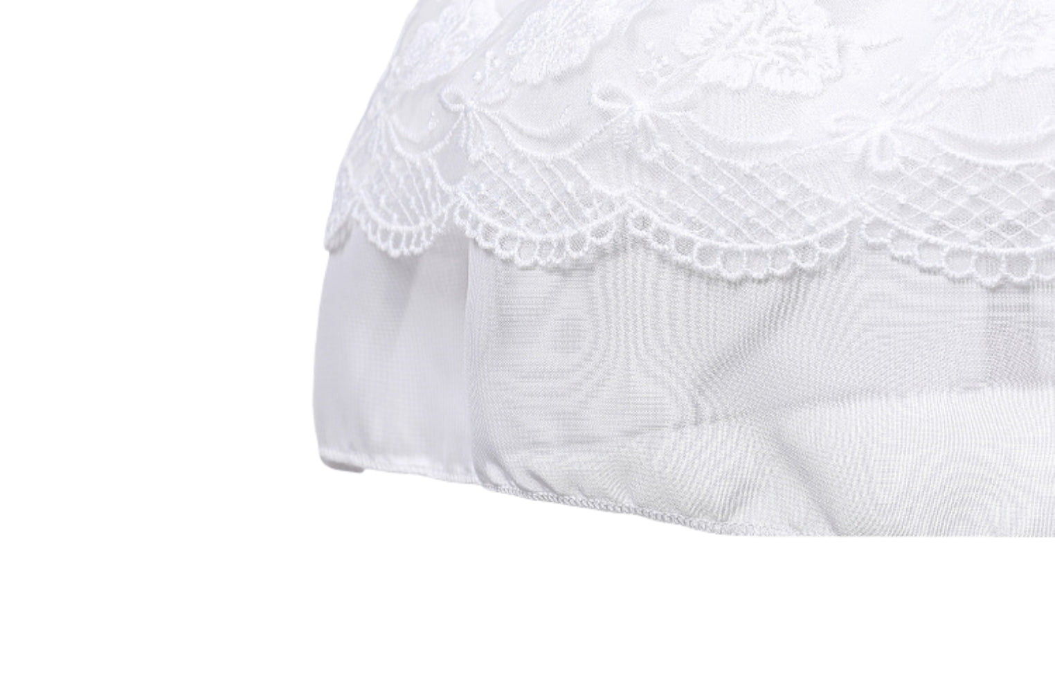 - Elegant three-layer design: lace overlay, breathable chiffon mid-layer, and cotton inner lining