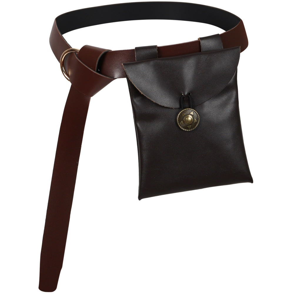 Medieval Knight PU Leather Belt with Pouch Renaissance LARP Storage Bag Cosplay