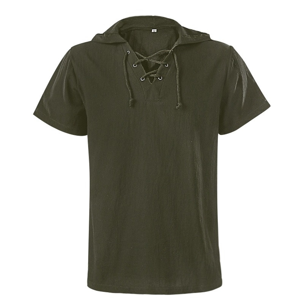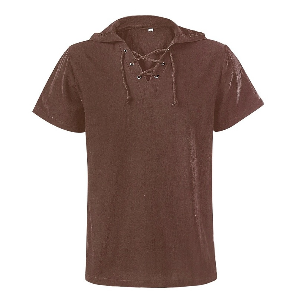Men Retro Medieval Renaissance Hooded Tops Shirt Pirate Viking Halloween Costume
