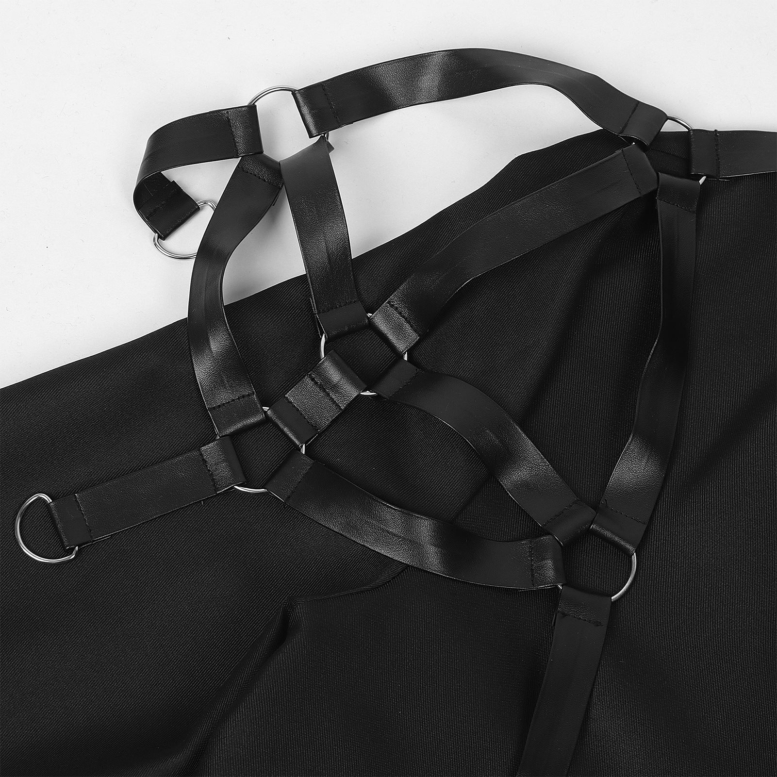 - Gothic Punk Design — High collar, harness straps & silver chains for a striking silhouette