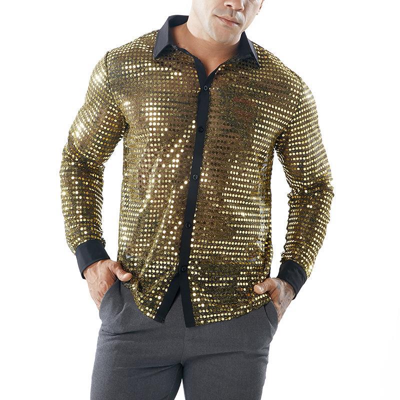 Men's Long Sleeved Performance Clothing - Collared 70s Disco Party Shirt