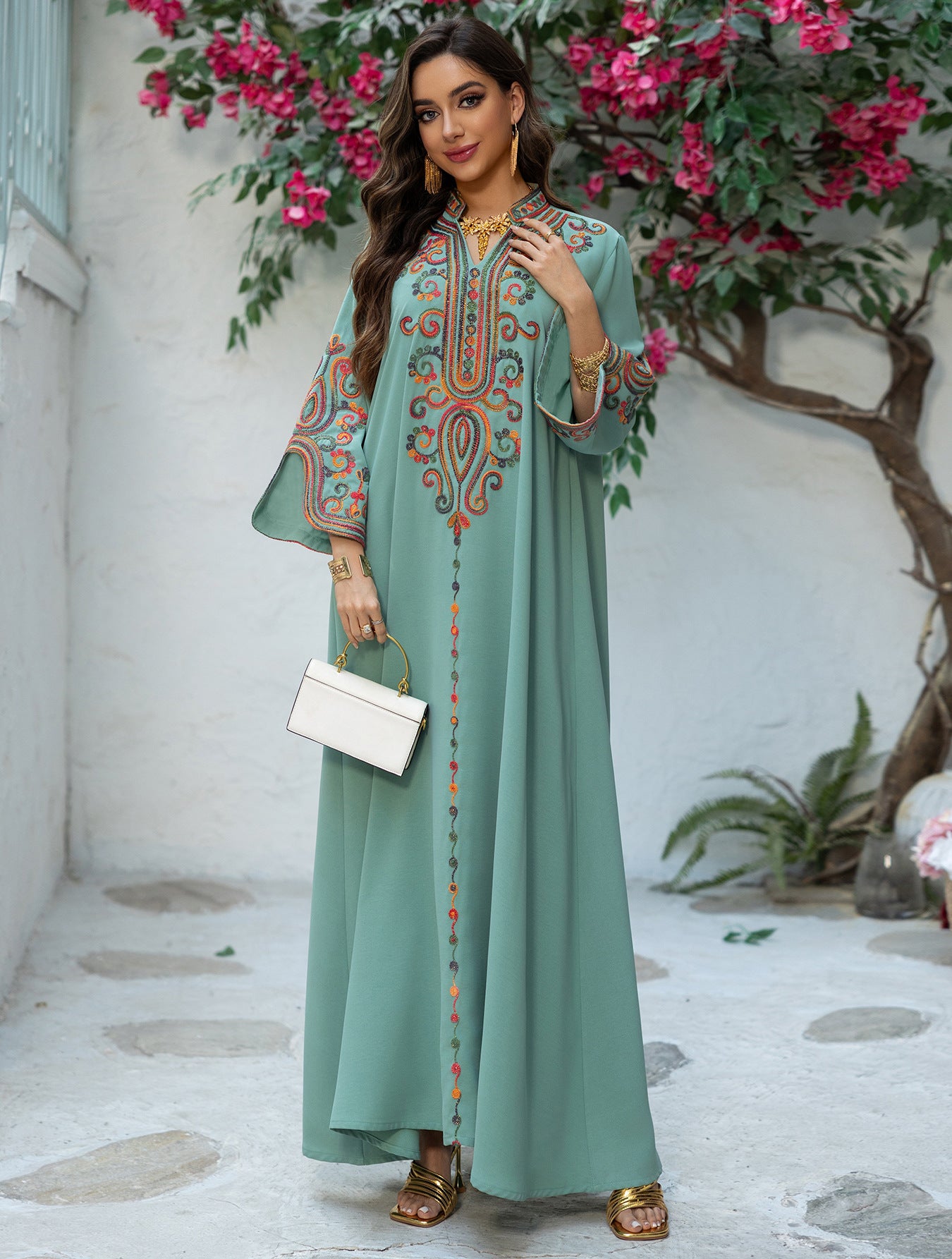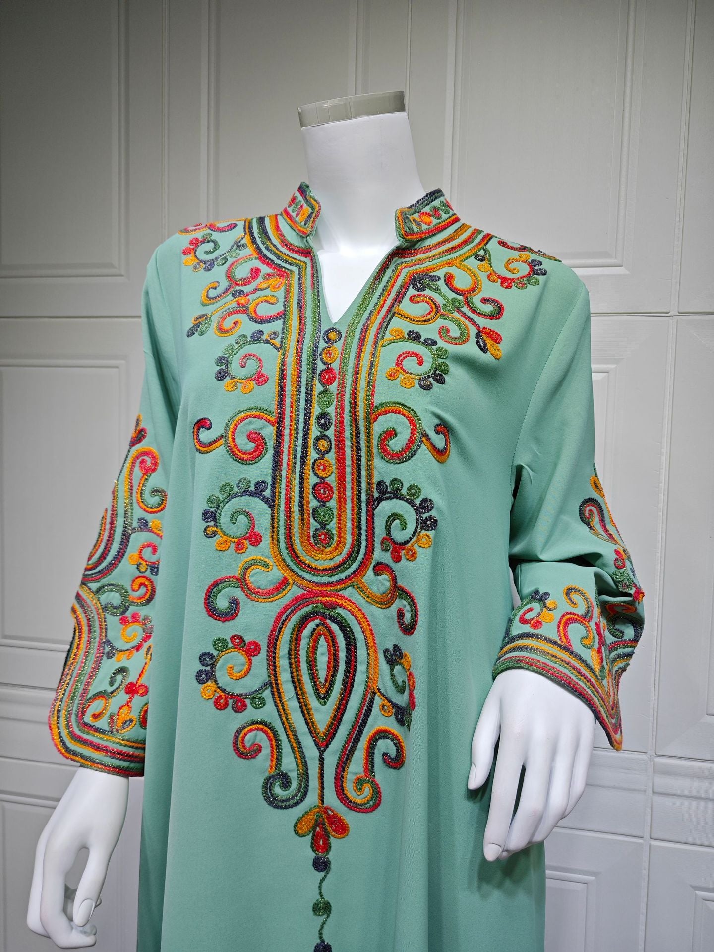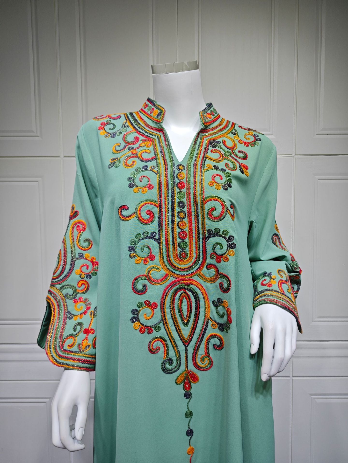 - Elegant and modest, this Muslim fashion women's embroidered rope robe features beautiful Middle Eastern style, perfect for daily wear, special occasions, or religious events. Available in plus sizes for a comfortable fit.