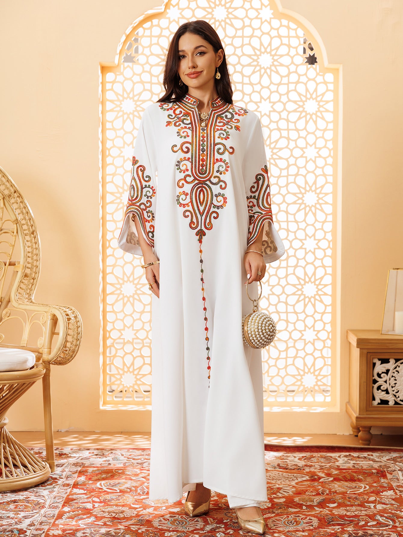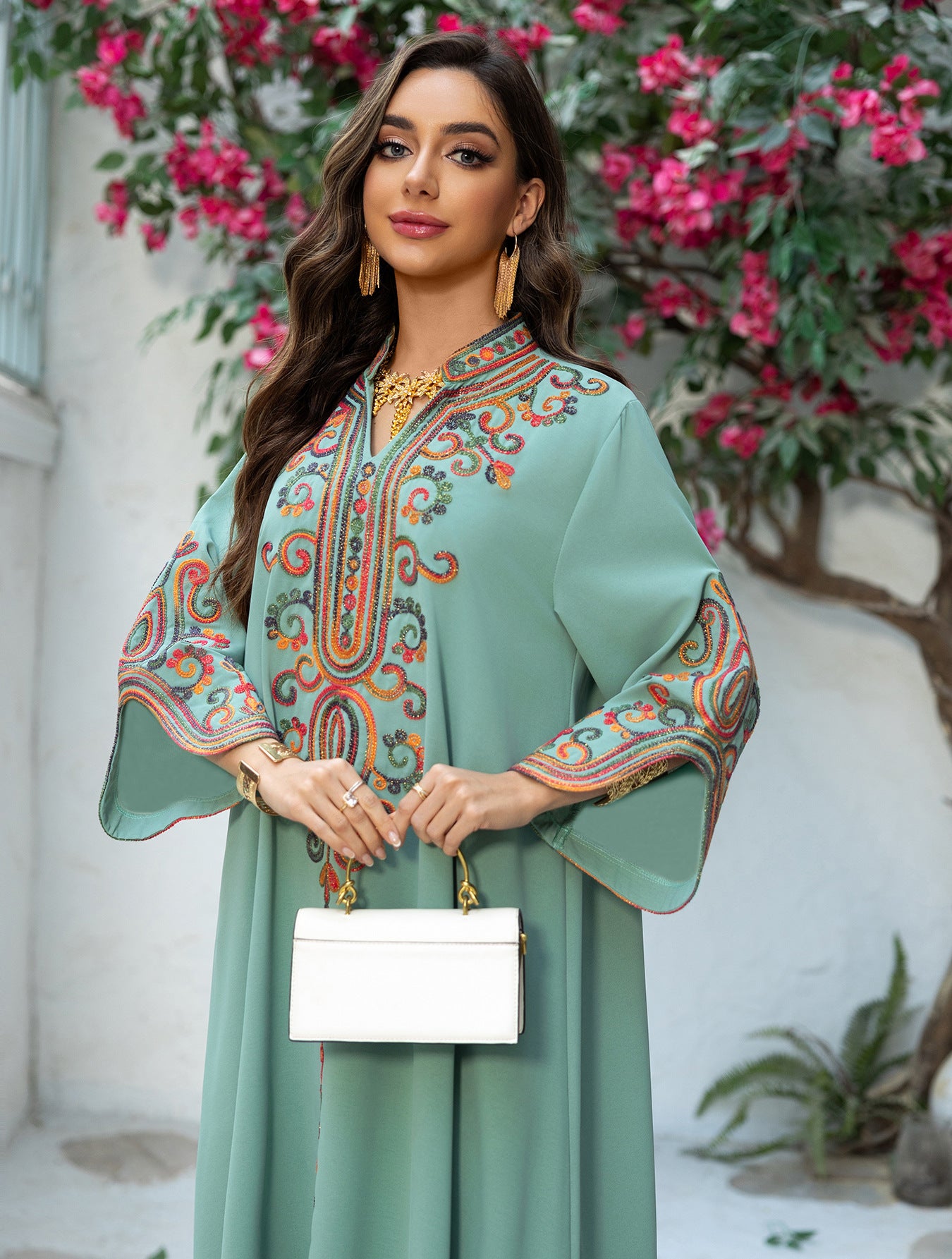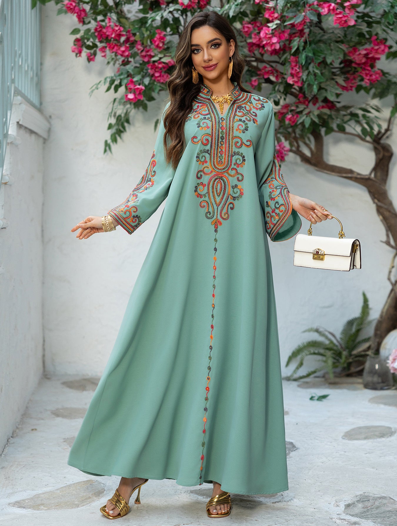 - Elegant and modest, this Muslim fashion women's embroidered rope robe features beautiful Middle Eastern style, perfect for daily wear, special occasions, or religious events. Available in plus sizes for a comfortable fit.