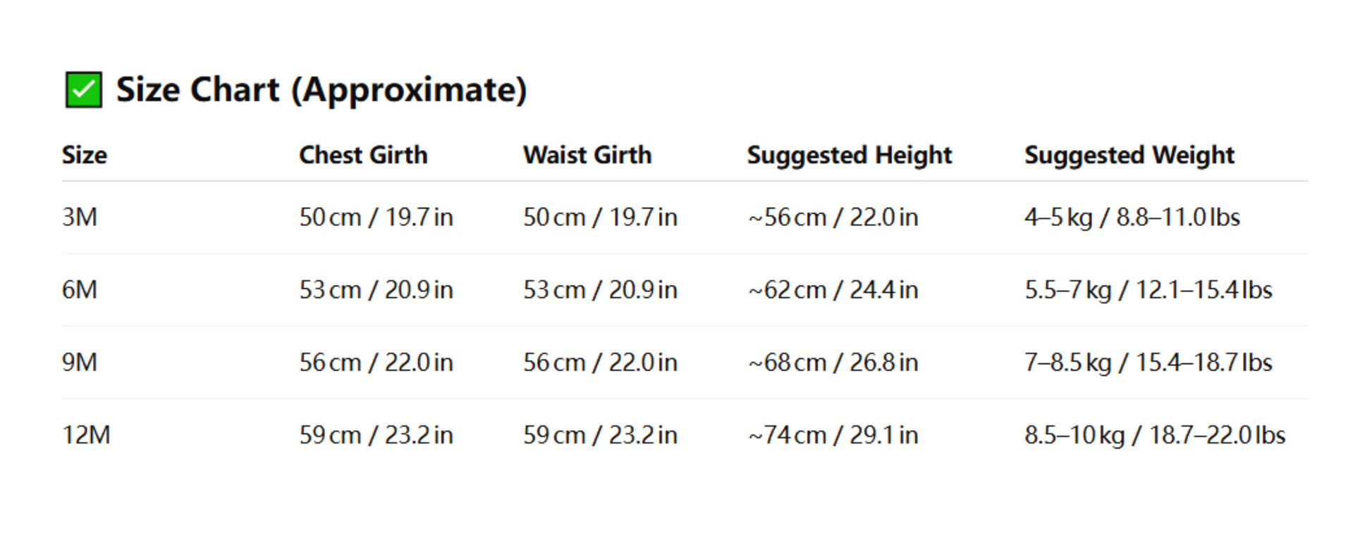 - Manual measurement may vary by 1–3 cm (0.4–1.2 inches).