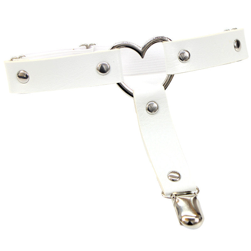 - Add a touch of edgy romance to your outfit with our Punk Love-Shaped Leather Leg Ring. Designed with Japanese non-slip thigh socks and foot ring garter accessories, this unique piece is perfect for making a bold fashion statement. Order now and elevate your style with this chic and daring accessory..