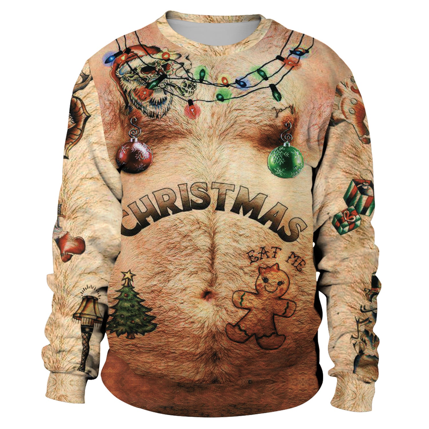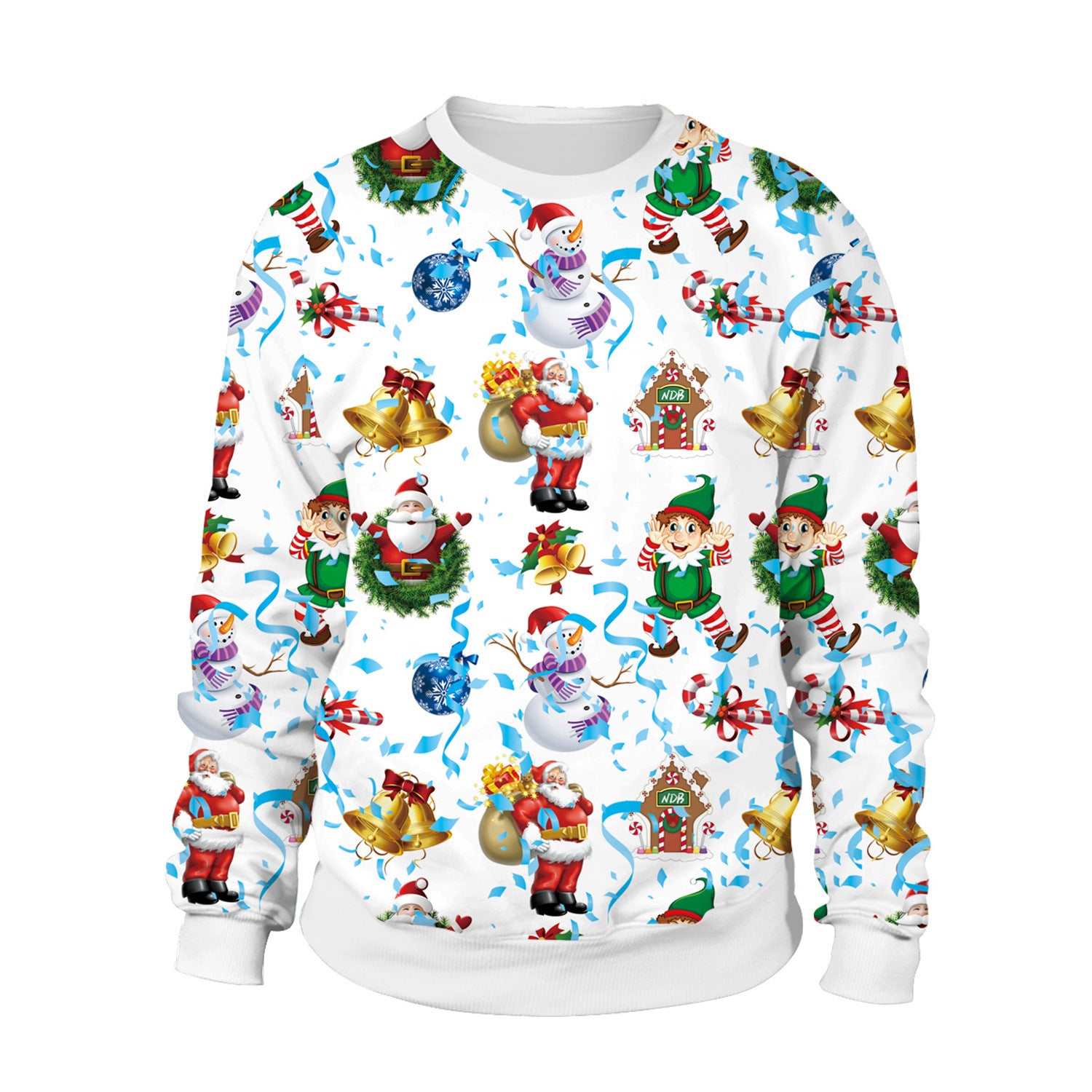 Santa Ugly Christmas Shirt 3D Print Graphic Women Men Christmas Long Sleeve Round Neck Top