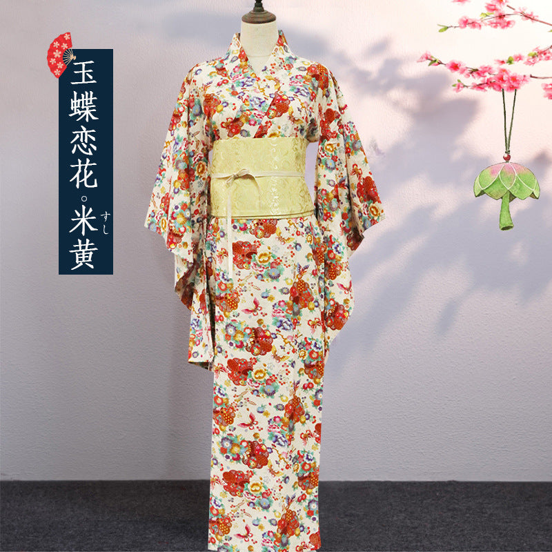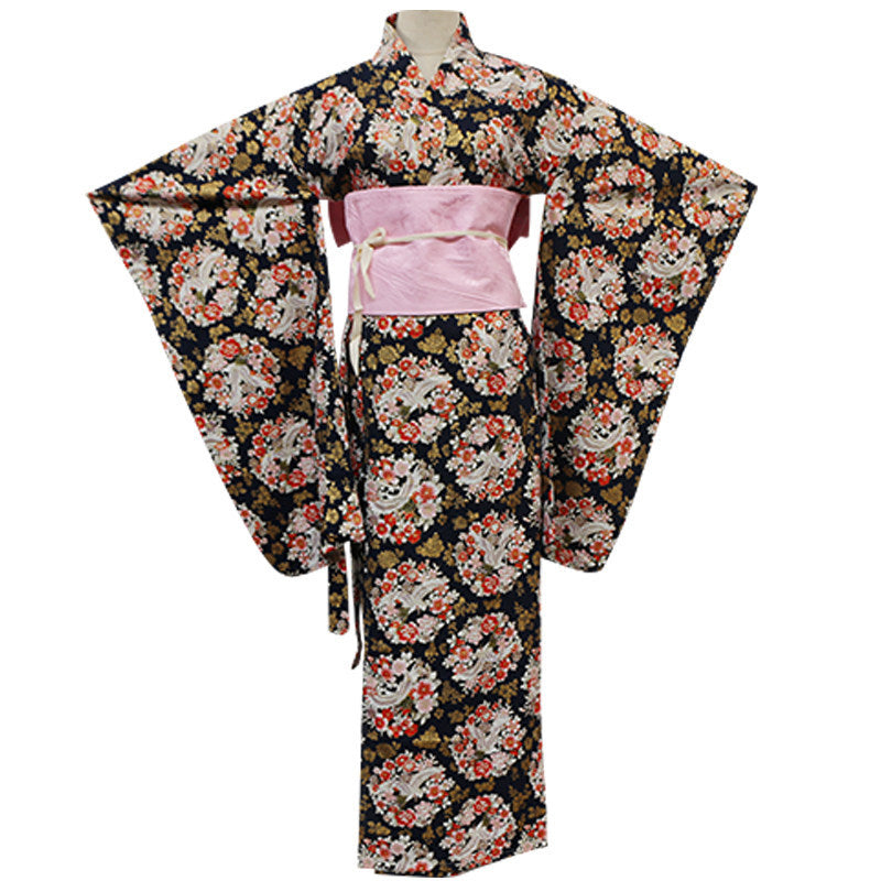 Slip into timeless comfort with this women’s cotton yukata kimono robe featuring a refined gold-foil print. Soft, breathable and easy to wear at home or for themed occasions, it blends traditional style with modern loungewear ease.
