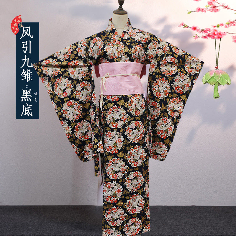 - High-quality kimono silhouette with elegant gold-foil pattern